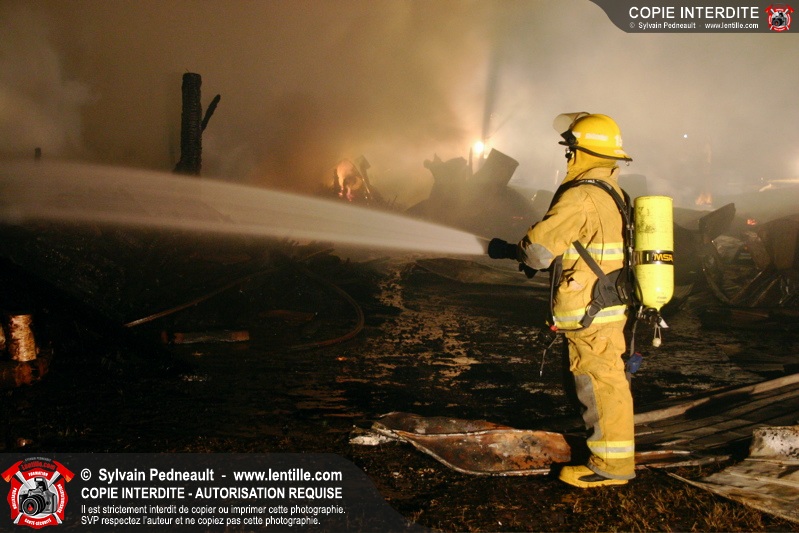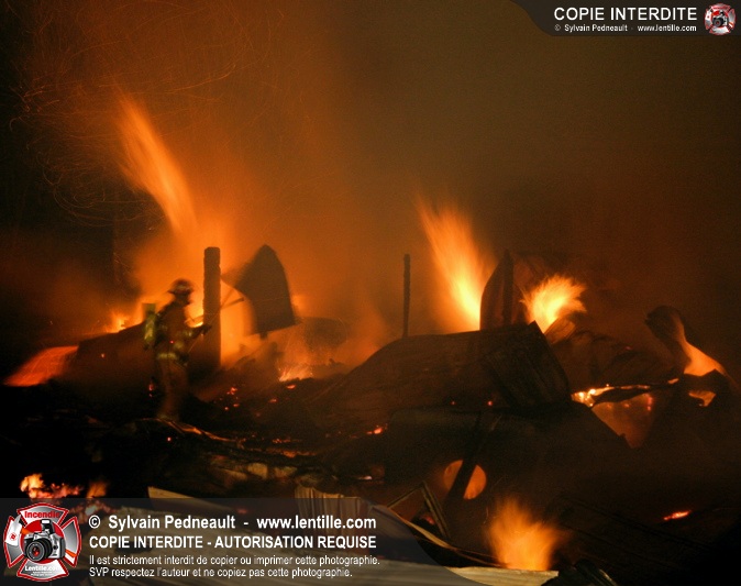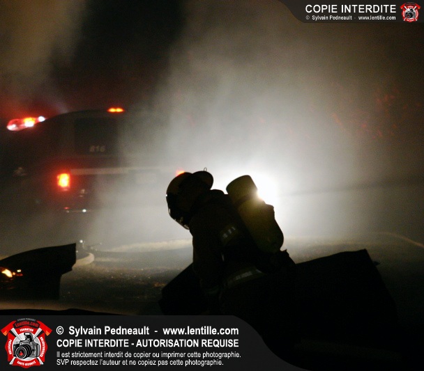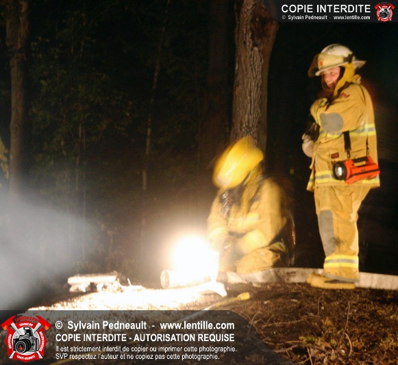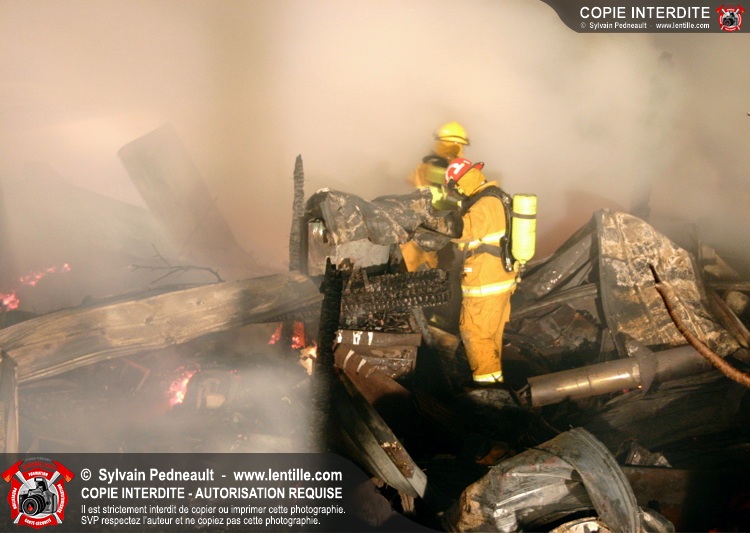 Le Service de sécurité incendie de St-Pie répond à un appel pour fumée et flammes apparentes dans le fond d'un champ de maïs. Arrivée sur les lieux, la première unité rapporte qu'il s'agit d'un incendie majeur dans une érablière.